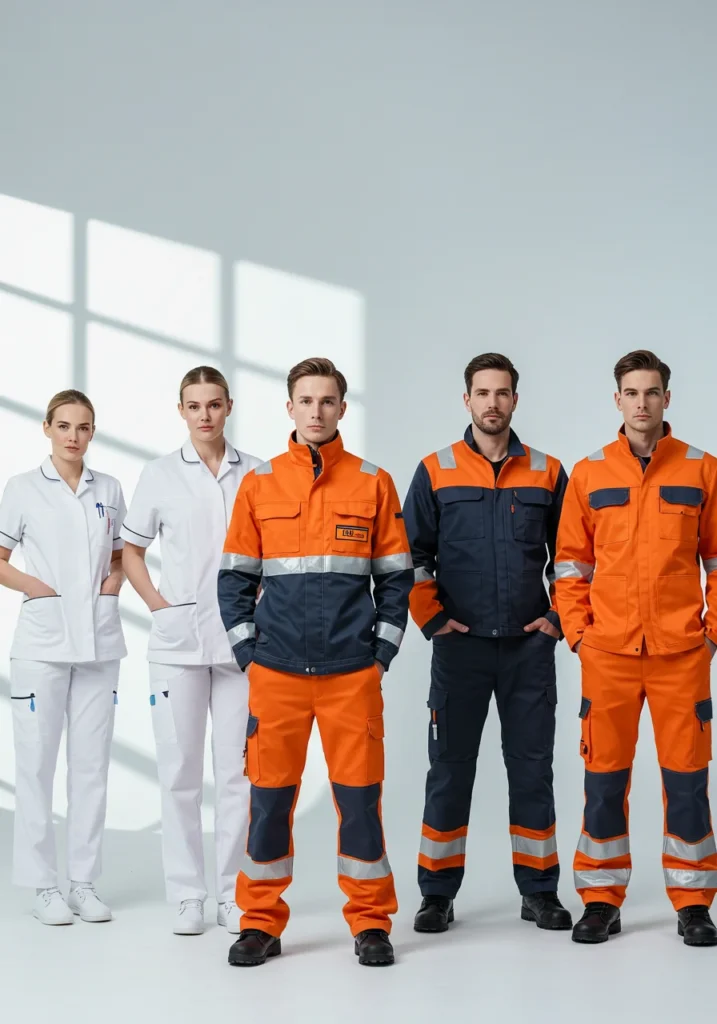 Professional scrubs, lab coats, and healthcare uniforms meeting international hygiene standards.